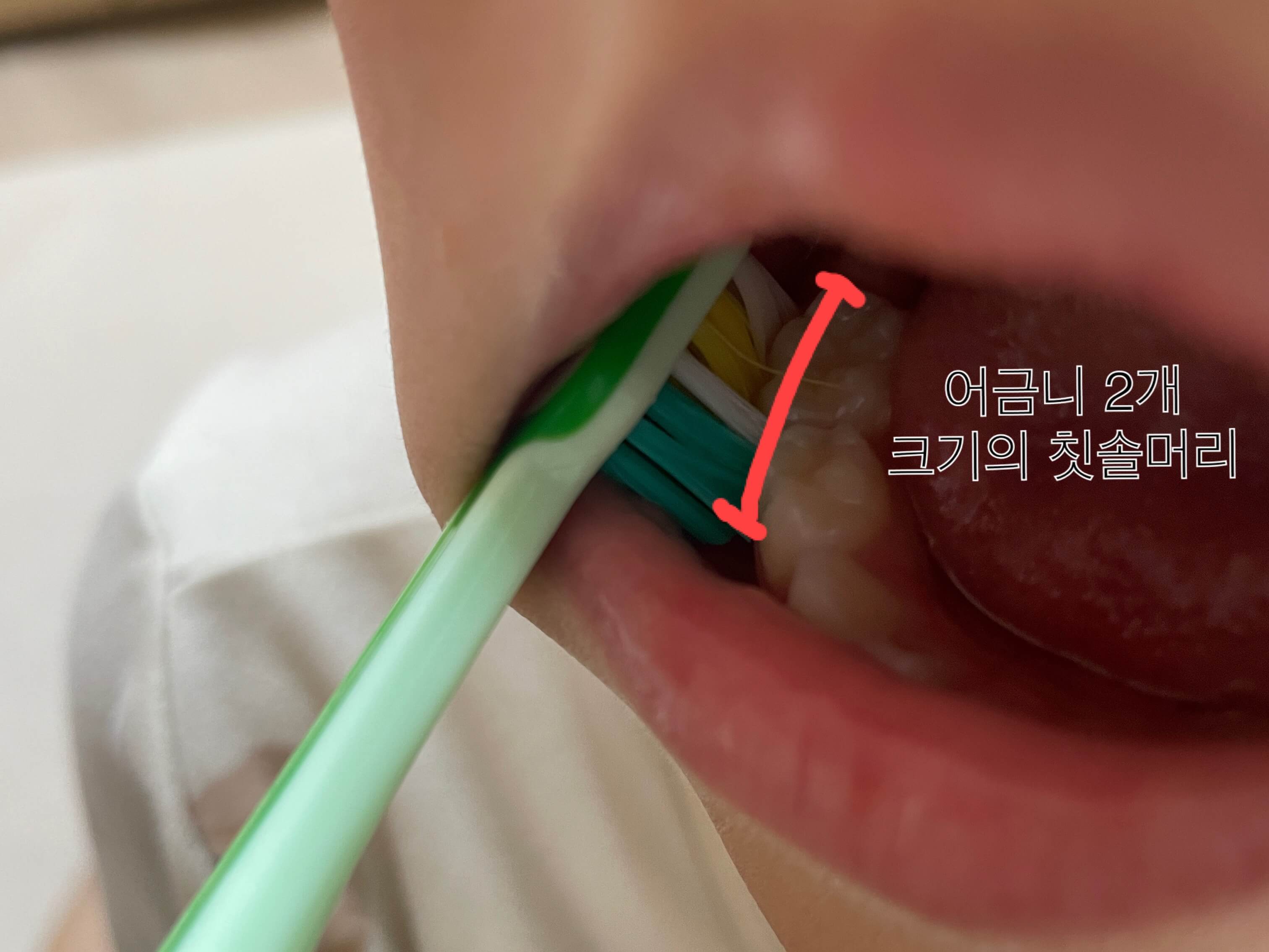 1. 칫솔 머리 크기: "어금니 2개를 기억하세요"